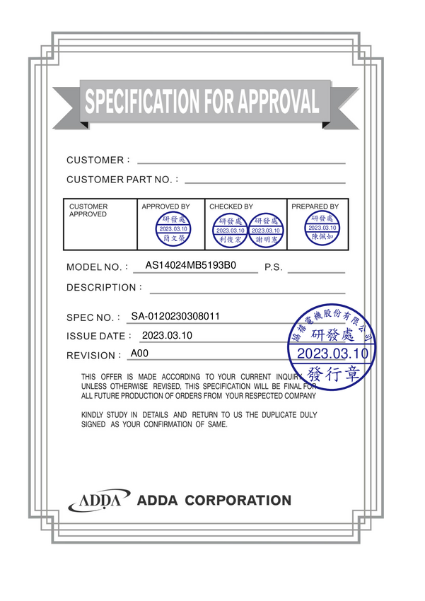 Wentylator osiowy ADDA AS14024MB5193B0, 24 V/DC, (D x S x W) 140 x 140 x 51 mm