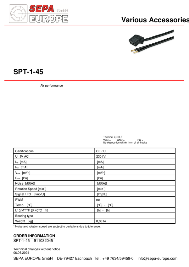 911032045 Kabel przyłączeniowy SEPA SPT-1-45, 230 V/AC