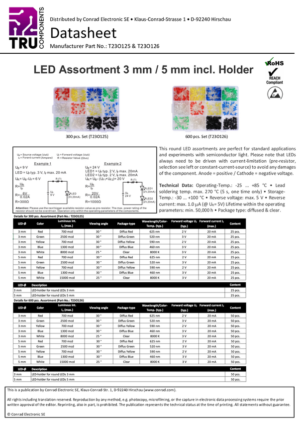 TC-12888388 Akcesoria LED TRU COMPONENTS T23O125 TC-12888388, 3 mm, 5 mm, 300 szt.