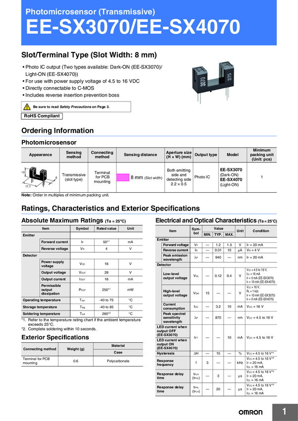 EE-SX1350 Fotokomórka Omron EE-SX1350 EE-SX1350 1 szt.