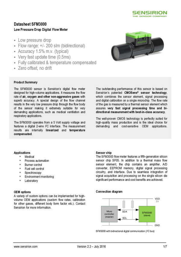Przepływomierz Sensirion SFM3000-200C, 1 szt.