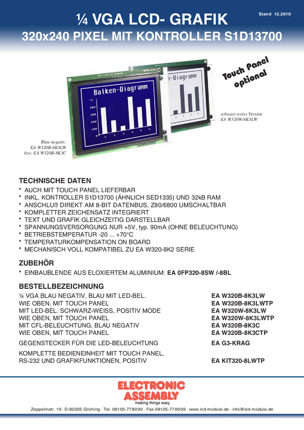 EAW320W-8K3LW Wyświetlacz graficzny Display Elektronik EAW320W-8K3LW biały 320 x 240 Pixe...