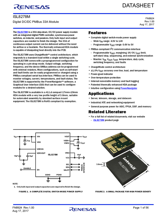 ISL8278MAIRZ Digital DC/DC PMBus 33A Module
