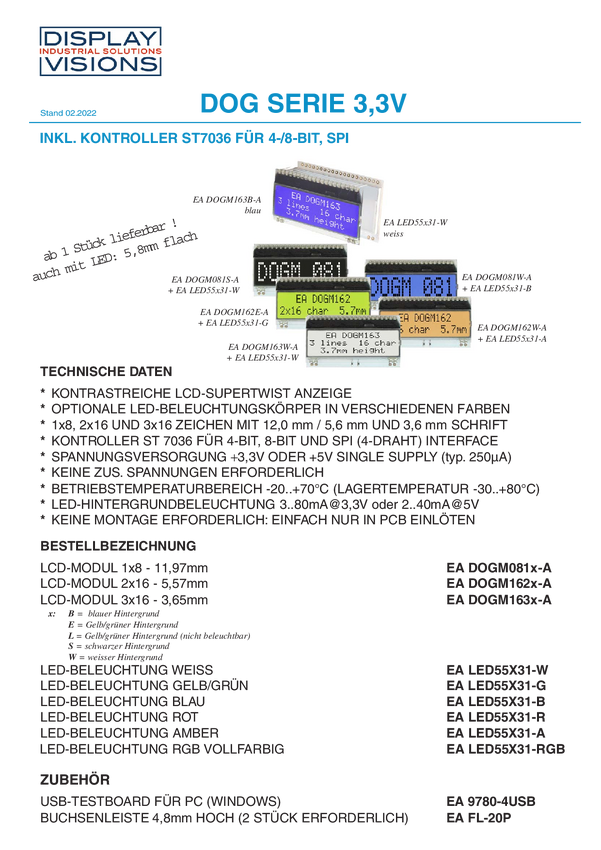 EADOGM162W-A Wyświetlacz LCD Display Elektronik EADOGM162W-A czarny (S x W x G) 55 x 28...
