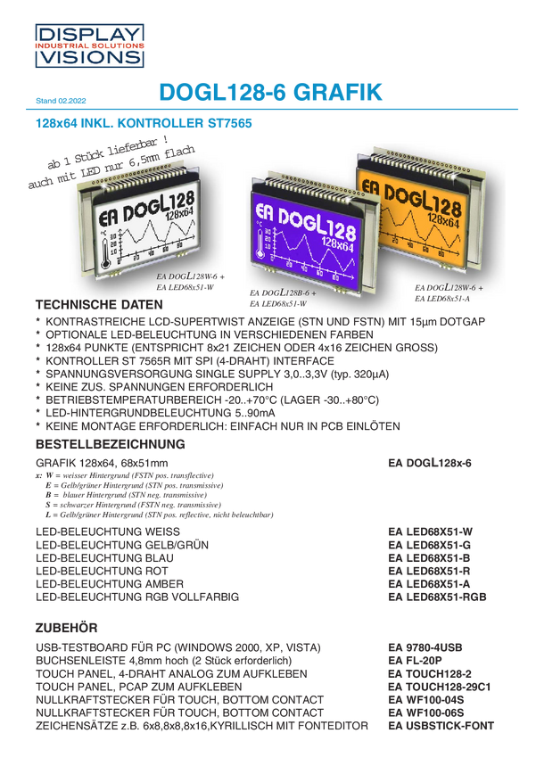 EADOGL128S-6 Wyświetlacz graficzny Display Elektronik EADOGL128S-6 128 x 64 Pixel (S x W...