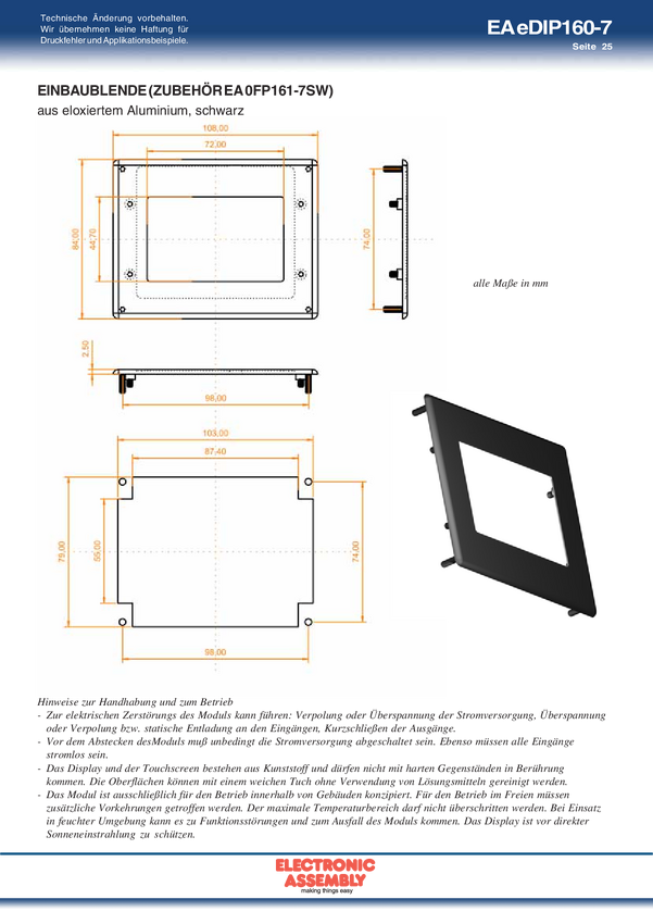 EA0FP161-7SW Ramka przednia Display Elektronik EA0FP161-7SW (S x W) 108 mm x 84 mm