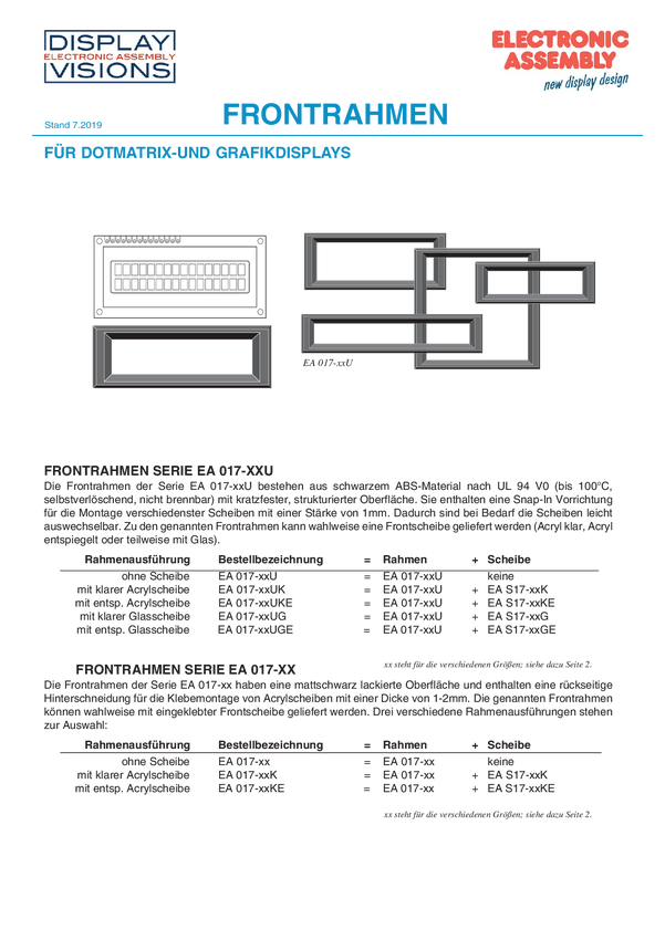 EA017-17UKE Ramka przednia Display Elektronik EA017-17UKE (S x W) 74 mm x 44.70 mm