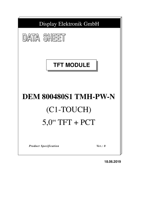 DEM800480S1TMH-PW-N(C1-TOUCH) Wyświetlacz LCD Display Elektronik DEM800480S1TMH-PW-N(C1-TOUCH) biały 800...