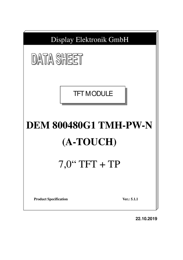 DEM800480G1TMH-PW-N(A-TOUCH) Wyświetlacz LCD Display Elektronik DEM800480G1TMH-PW-N(A-TOUCH) biały 800 x...