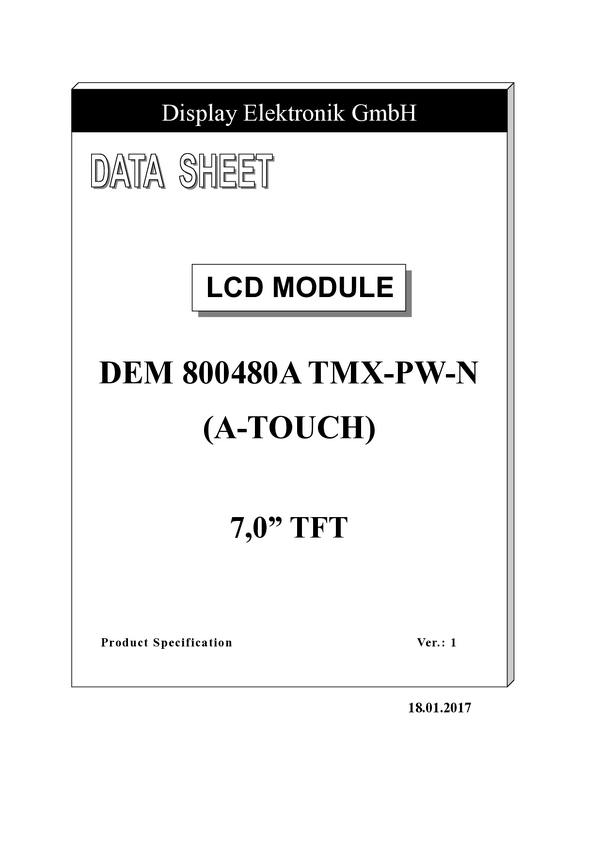 DEM800480ATMX-PW-N(A-TOUCH) Wyświetlacz LCD Display Elektronik DEM800480ATMX-PW-N(A-TOUCH) biały 800 x...