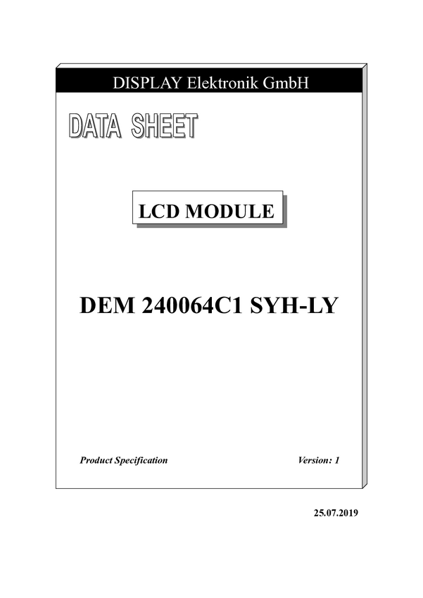 DEM240064C1SYH-LY Wyświetlacz LCD Display Elektronik DEM240064C1SYH-LY żółto-zielony 240 x 64...
