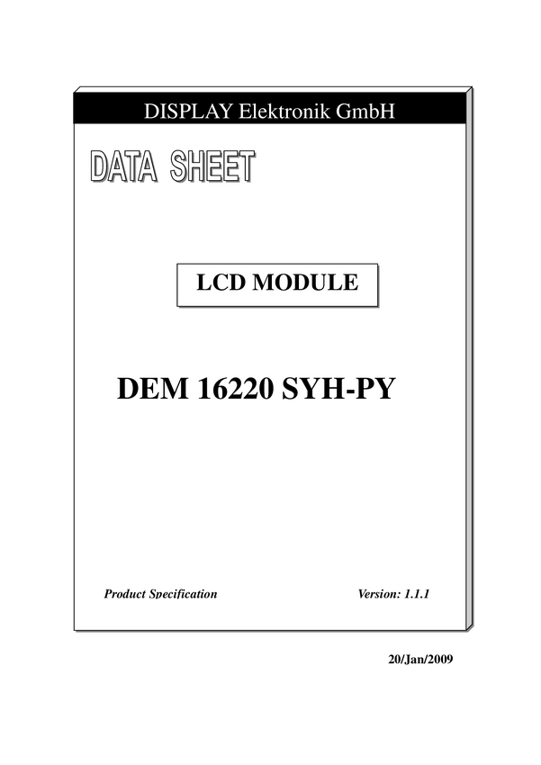 Wyświetlacz LCD Display Elektronik DEM16220SYH-PY czarny żółto-zielony (S x W x G) 80 x 36 x 10.5 mm
