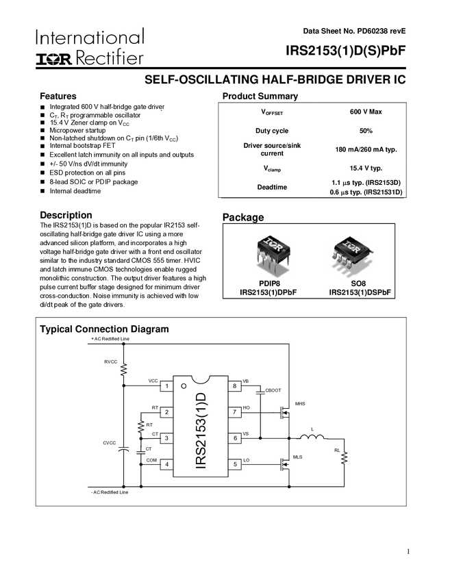 IRS2153DPBF PMIC - Sterownik bramy Infineon Technologies IRS2153DPBF PDIP-8