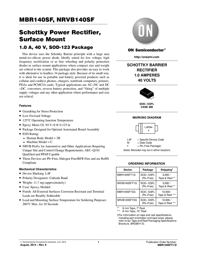 MBR140SFT1G ONS SMD Diody Schottky'ego do 3A MBR_T_G S ON Semiconductor MBR140SFT1G...