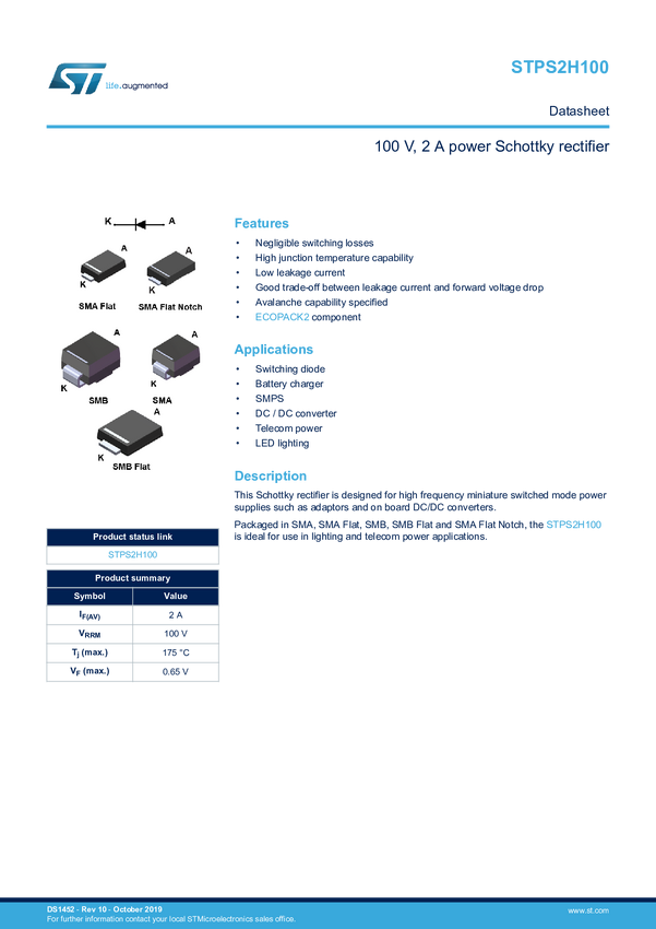 STPS2H100 Diody Schottky'ego od 1A do 5A 1N58_, SB_, ST STMicroelectronics STPS2H...