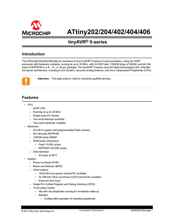 ATTINY204-SSFR Mikrokontroler wbudowany Microchip Technology ATTINY204-SSFR