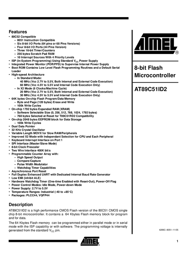 AT89C51ID2-SLSUM Mikrokontroler wbudowany Microchip Technology AT89C51ID2-SLSUM