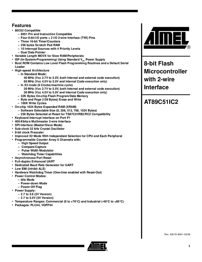 AT89C51IC2-SLSUM Mikrokontroler wbudowany Microchip Technology AT89C51IC2-SLSUM