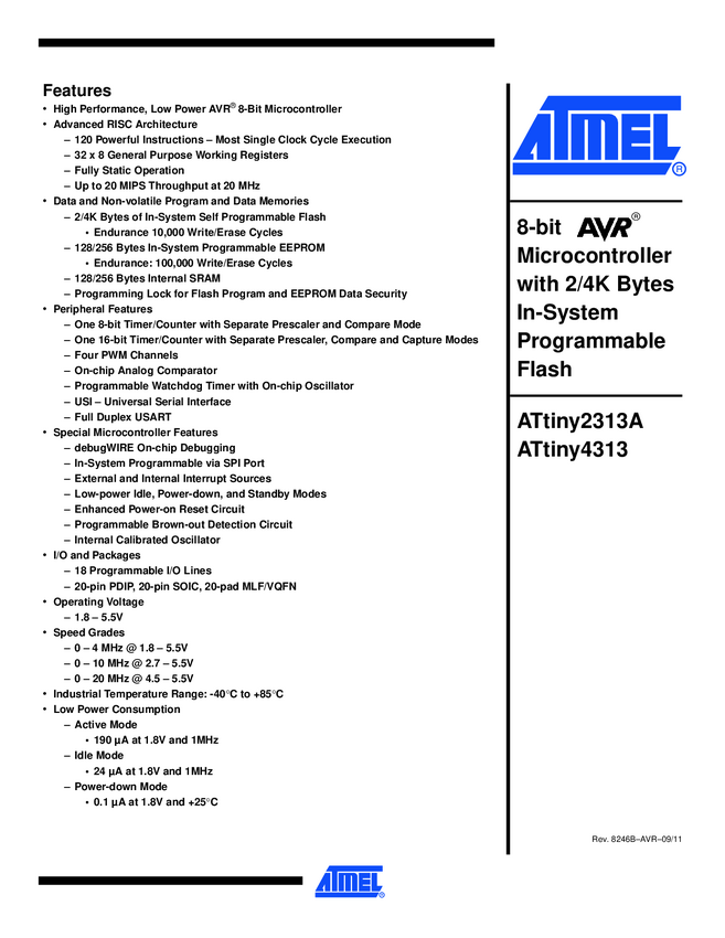 ATTINY4313-PU Mikrokontroler wbudowany Microchip Technology ATTINY4313-PU