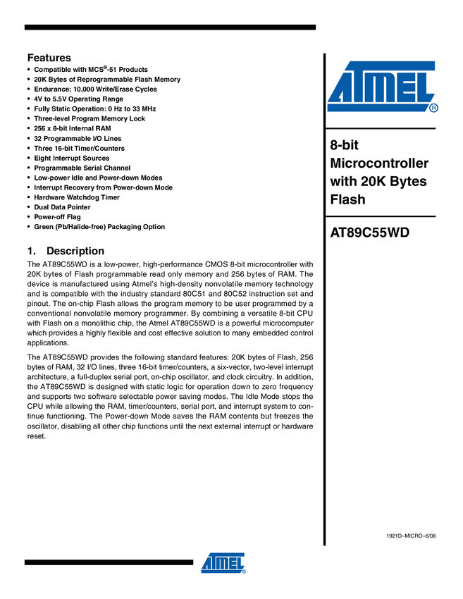 Mikrokontroler wbudowany Microchip Technology AT89C55WD-24JU