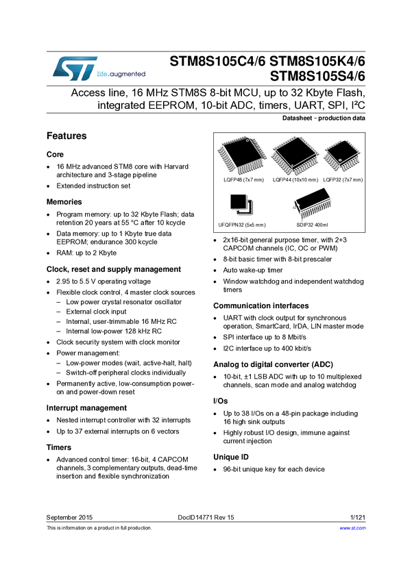 Mikrokontroler wbudowany STMicroelectronics STM8S105K6T6C