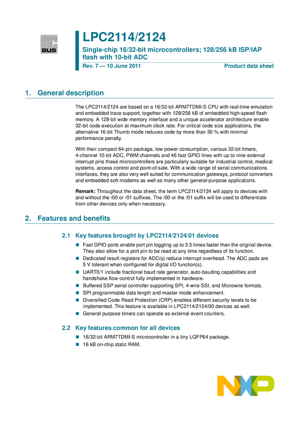 LPC2124FBD64/01,15 Mikrokontroler wbudowany NXP Semiconductors LPC2124FBD64/01,15