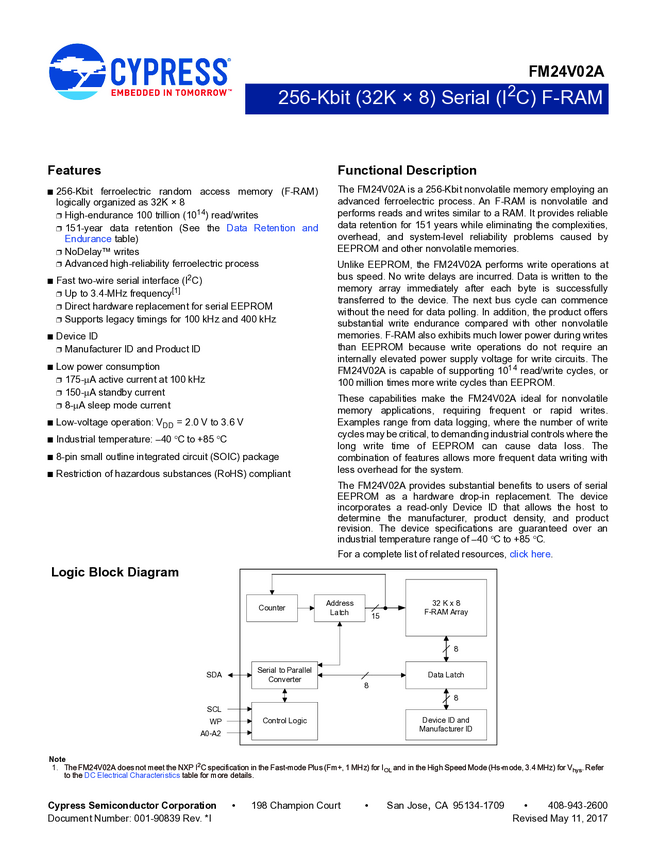 FM24V02A-G Pamięć IC Infineon Technologies FM24V02A-G, 1 szt.