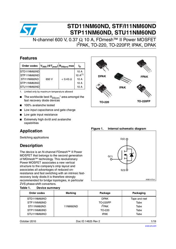 MOSFET STMicroelectronics STP11NM60ND N/A N/A