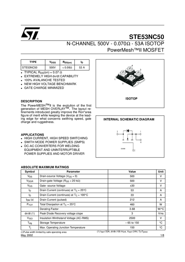 MOSFET STMicroelectronics STE53NC50 N/A N/A
