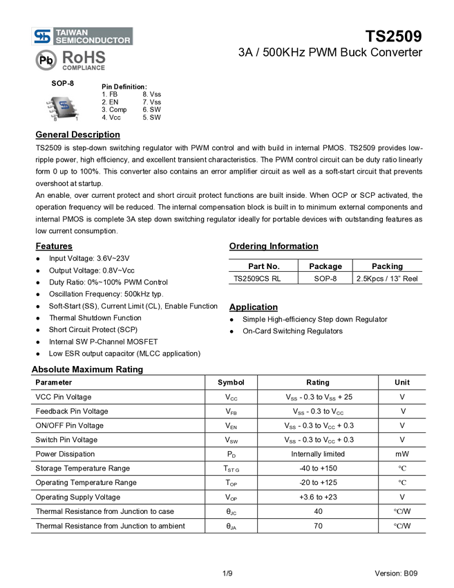 TS2509CS RLG PMIC - regulator napięcia - Przetwornik DC-DC Taiwan Semiconductor TS2509CS...