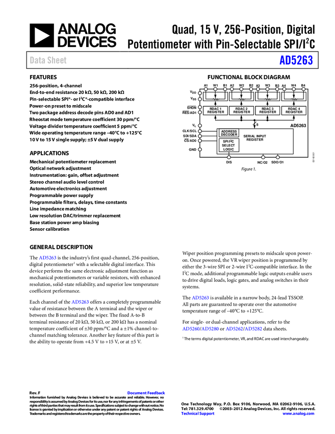 Układy scalone akwizycji danych - potencjometr cyfrowy Analog Devices AD5263BRUZ50 AD5263BRUZ50, 1 szt.