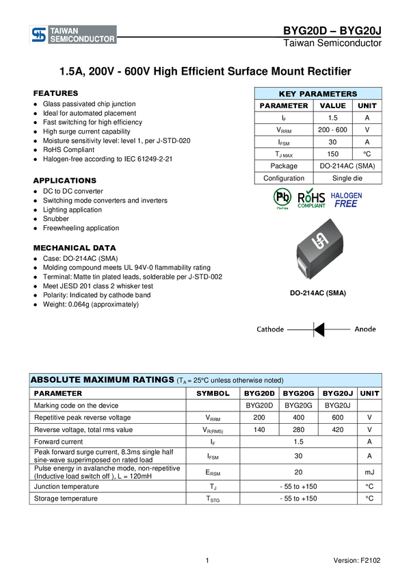 BYG20D Dioda ESD Taiwan Semiconductor BYG20D N/A N/A