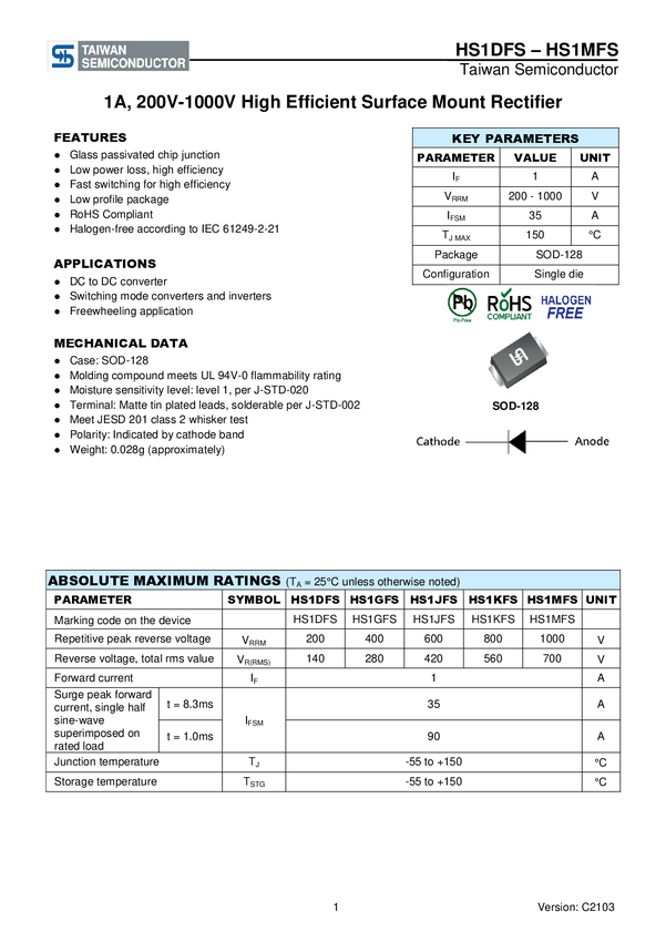 Dioda ESD Taiwan Semiconductor HS1MFS N/A N/A
