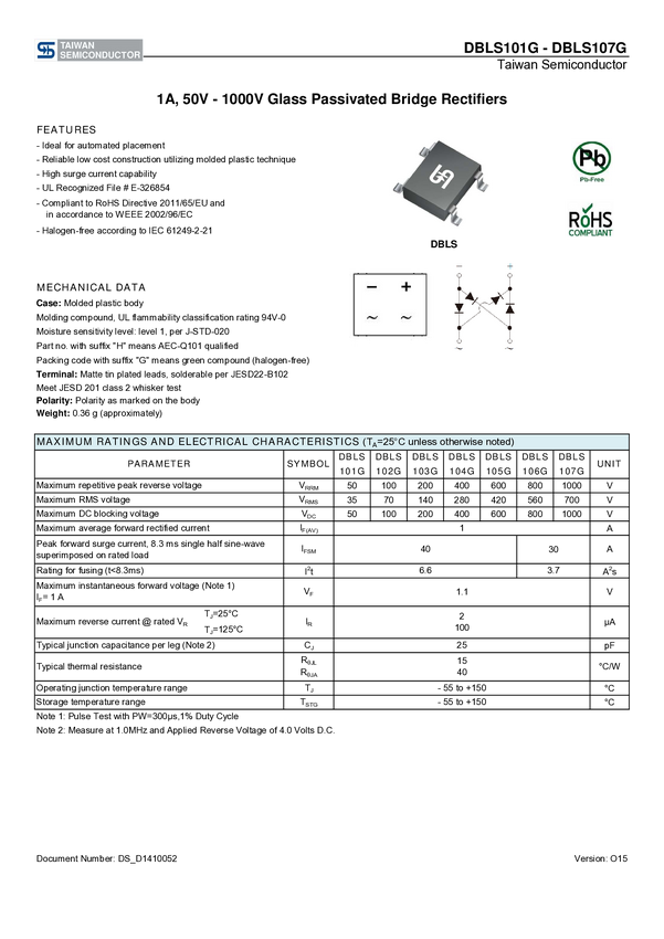 Taiwan Semiconductor DBLS104G Prostownik mostkowy DBLS 400 V taśma na dużej rolce