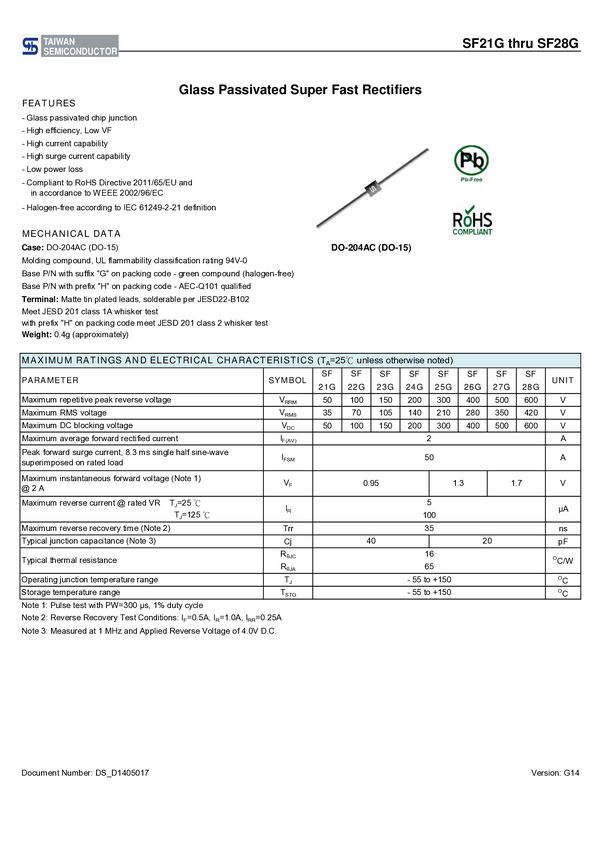 SF26G Dioda ESD Taiwan Semiconductor SF26G N/A N/A