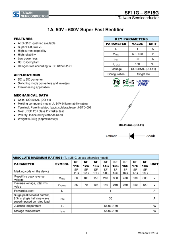 SF16G Dioda ESD Taiwan Semiconductor SF16G N/A N/A