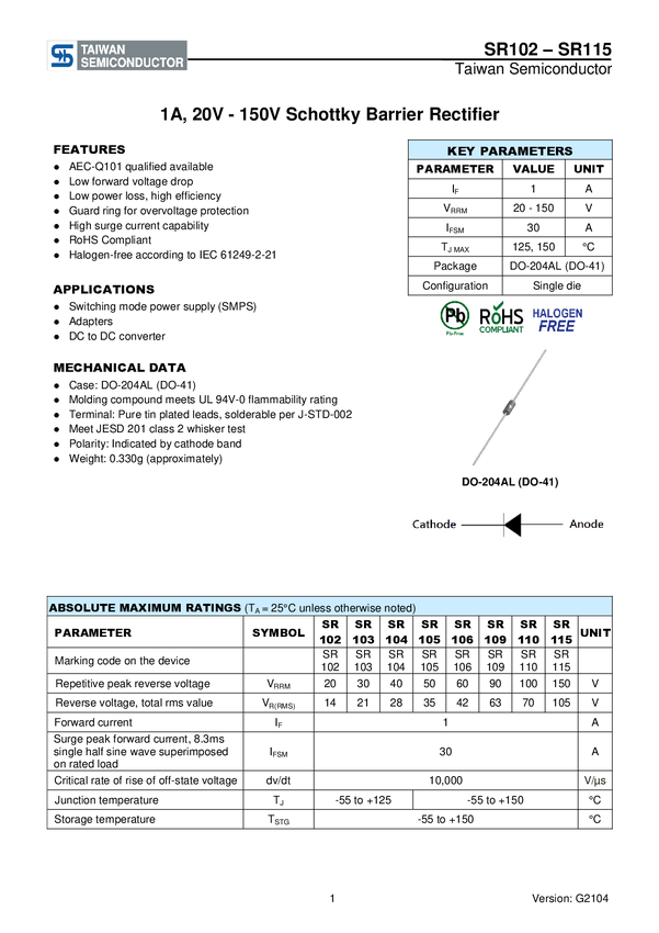 SR110 Dioda Schottky'ego Taiwan Semiconductor SR110 N/A N/A N/A