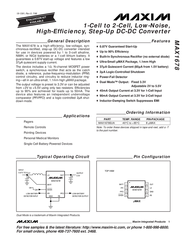 PMIC - regulator napięcia - Przetwornik DC-DC Maxim Integrated MAX1678EUA+