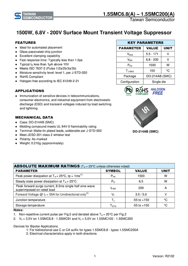Dioda TVS Taiwan Semiconductor 1.5SMC39CA 1.5SMC39CA, 1 szt.