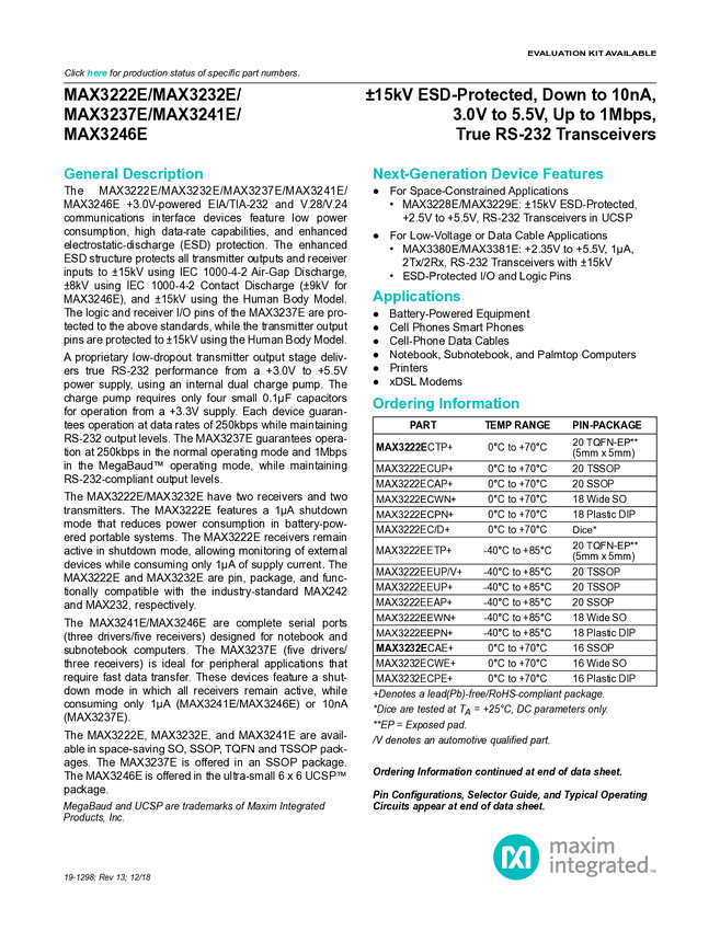 Układ scalony interfejsów - Transceiver Maxim Integrated MAX3232EEAE+