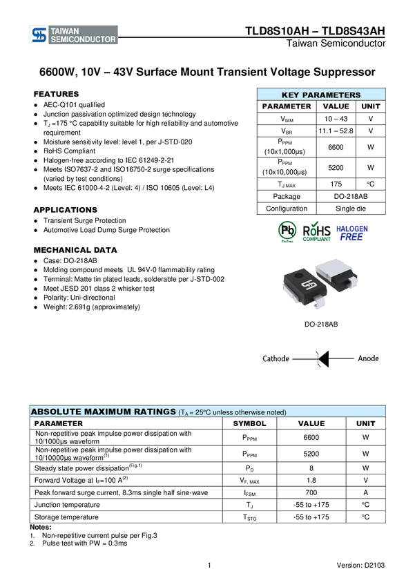 TLD8S33AH Dioda TVS Taiwan Semiconductor TLD8S33AH TLD8S33AH, 1 szt.