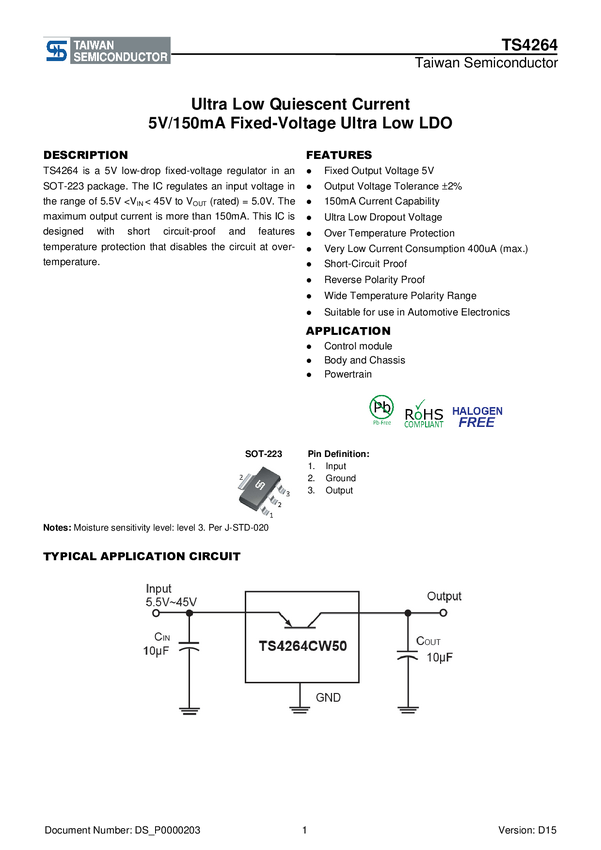 TS4264CW50 RPG Taiwan Semiconductor TS4264CW50 RPG PMIC - regulator napięcia - Liniowy (LD...