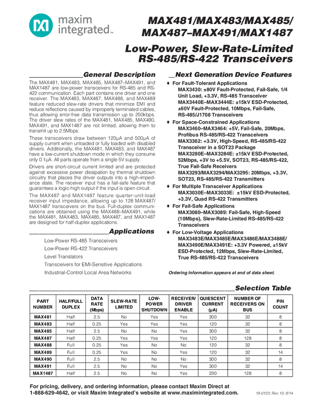 MAX481CSA+T Układ scalony interfejsów - Transceiver Maxim Integrated MAX481CSA+T