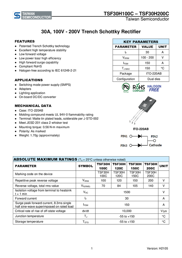 TSF30H200C Dioda Schottky'ego Taiwan Semiconductor TSF30H200C N/A N/A N&#4...