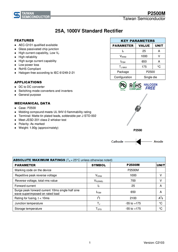 P2500M Dioda ESD Taiwan Semiconductor P2500M N/A N/A