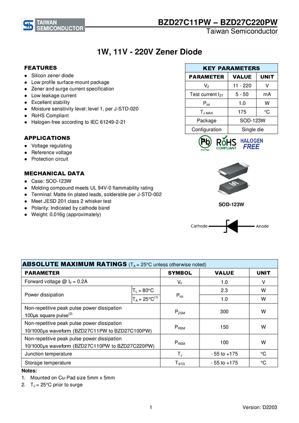 BZD27C24PW Taiwan Semiconductor Dioda Zenera BZD27C24PW taśma na dużej rolce