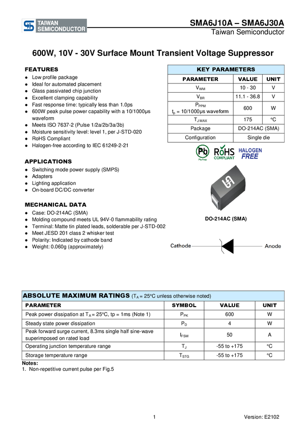 SMA6J30A Dioda TVS Taiwan Semiconductor SMA6J30A SMA6J30A, 1 szt.