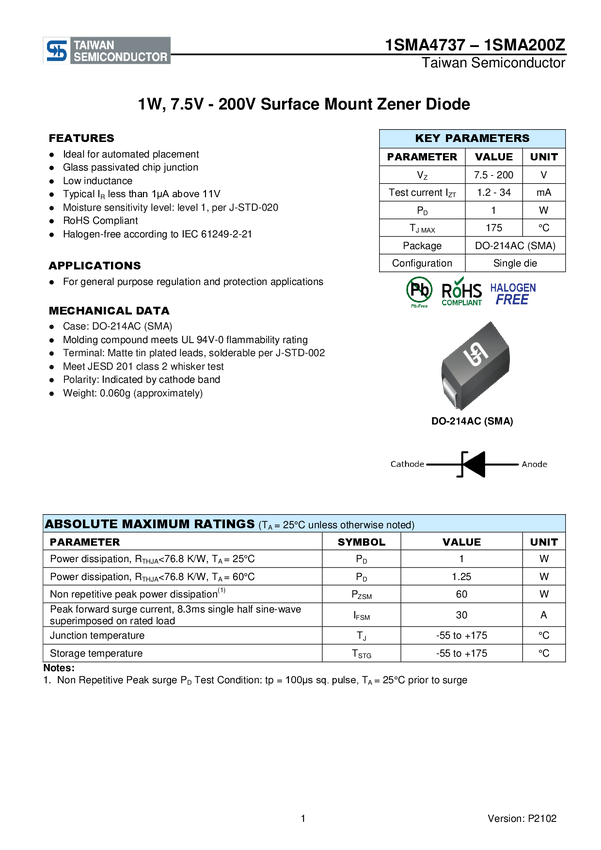 1SMA200Z Dioda ESD Taiwan Semiconductor 1SMA200Z N/A N/A