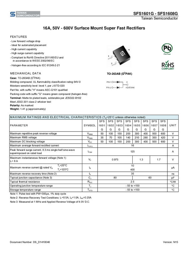 SFS1608G Dioda ESD Taiwan Semiconductor SFS1608G N/A N/A