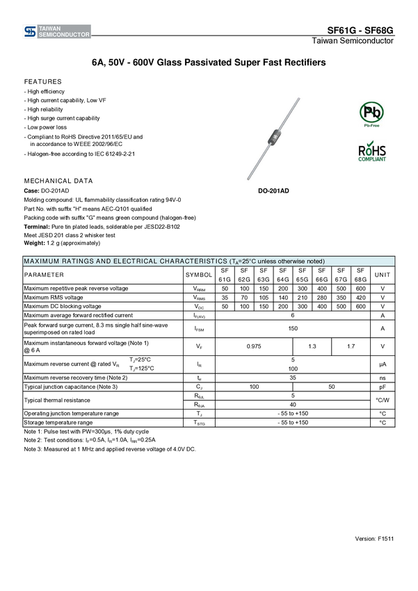 SF66G Dioda ESD Taiwan Semiconductor SF66G N/A N/A